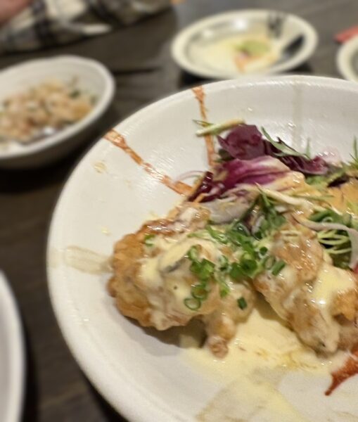 身はとても柔らかく、香草に付け込んであり少しハーブのような香りがします。タルタルソースも洋風で鶏肉とのマッチも素晴らしい。